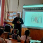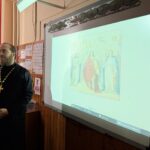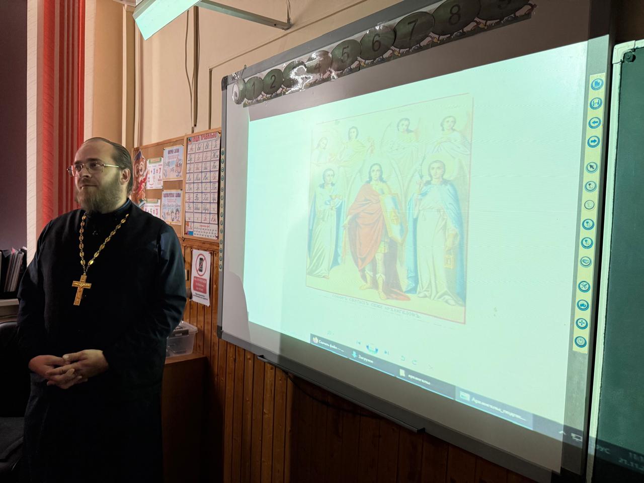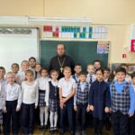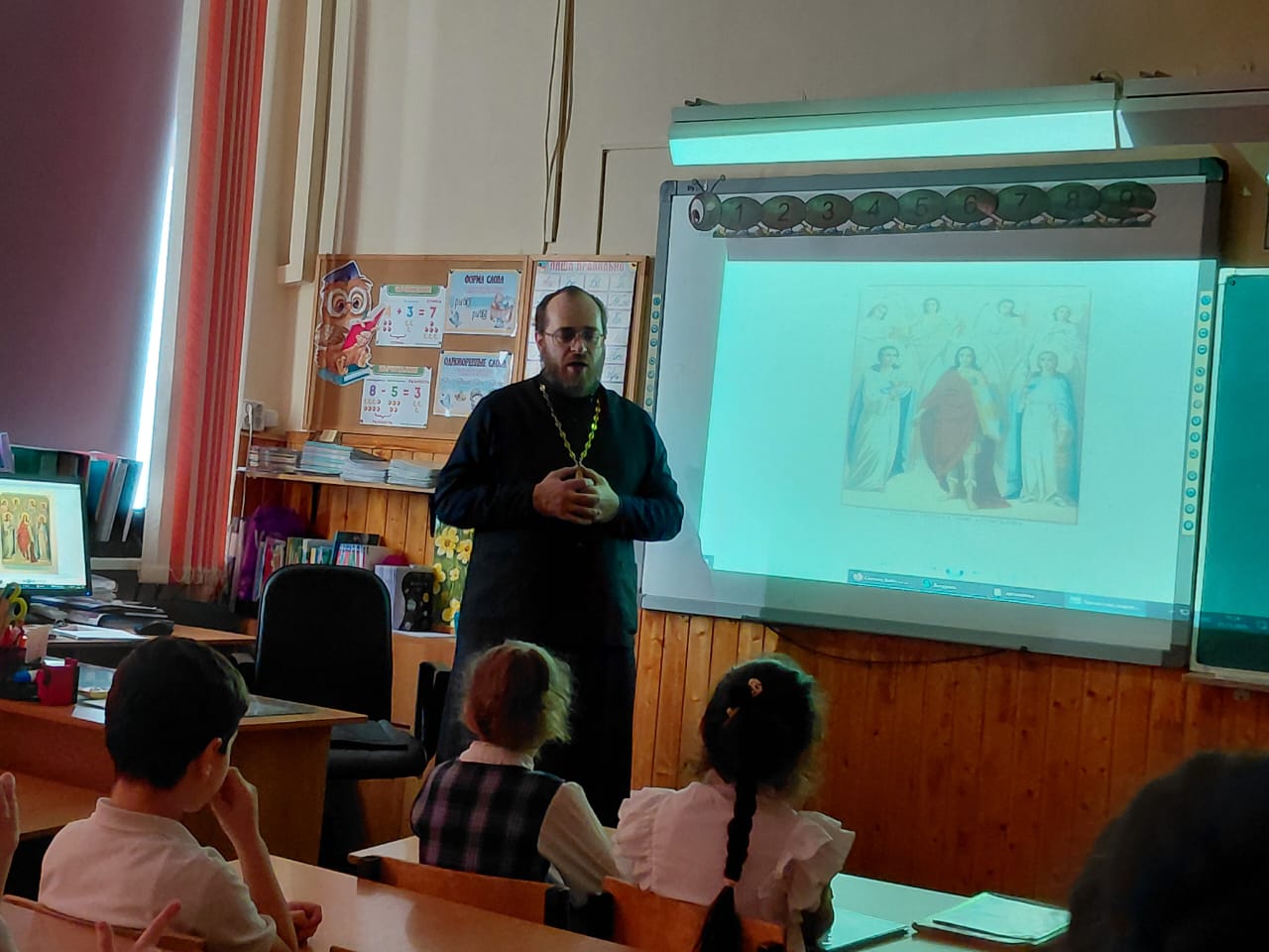 Сегодня, в праздник Собора Архистратига Михаила и прочих Небесных Сил Бесплотных священник нашего храма иерей Сергий Корнет провел урок у подопечных храма Трех святителей в школе № 41. Урок на тему собора небесных сил проходил для младшеклассников из 2-го класса.