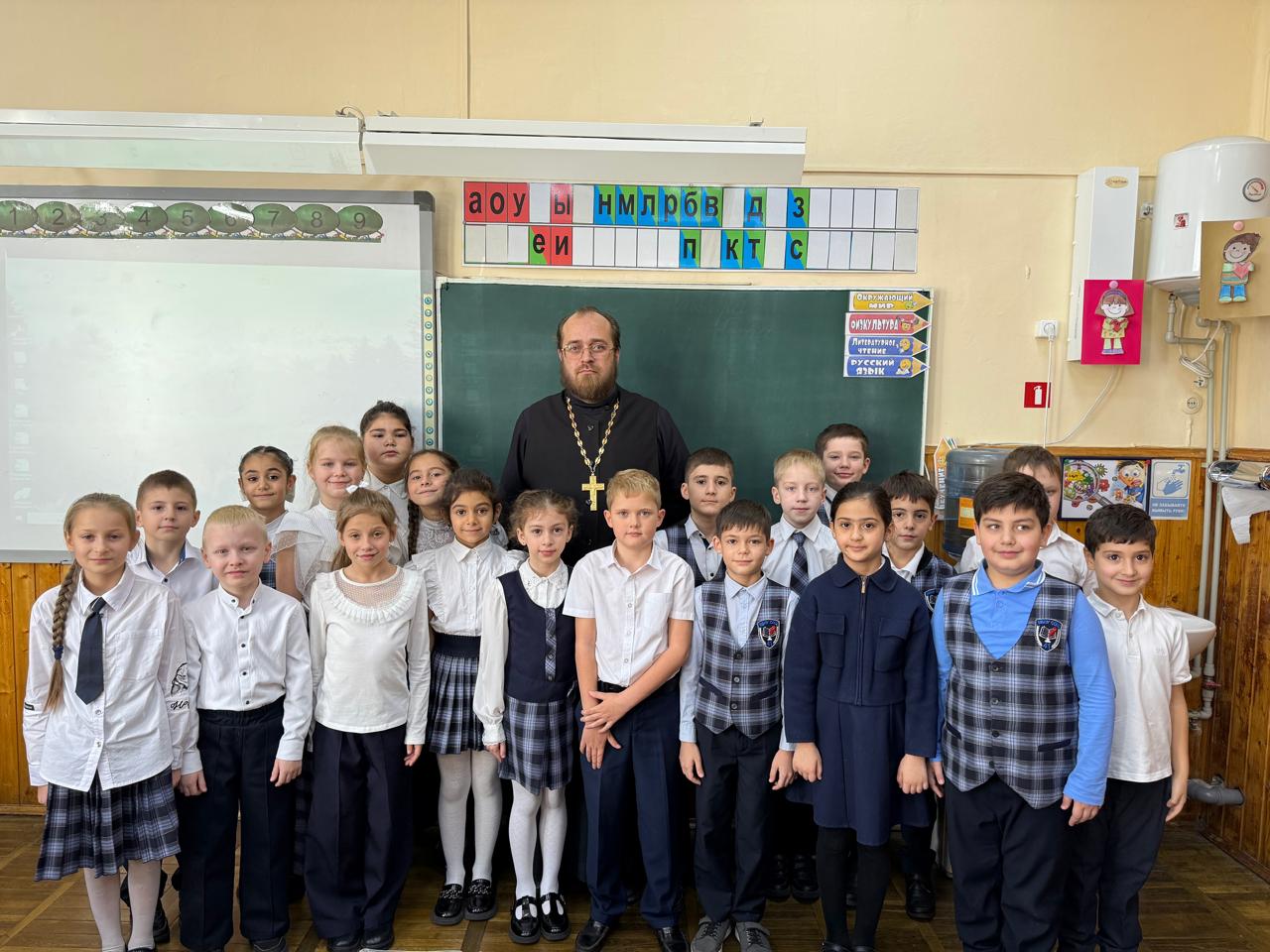 Также отец Сергий поведал деткам о сотворении мира, о церковных праздниках,о самой церкви, как о доме молитвы, о душе человека, об архангелах и ангелах-хранителях. Очень интересно школьникам было послушать от батюшки от кого и чего защищает ангел-хранитель, слушали с большим вниманием и радостью в душе, обещали поделиться своими полученными знаниями с родителями.