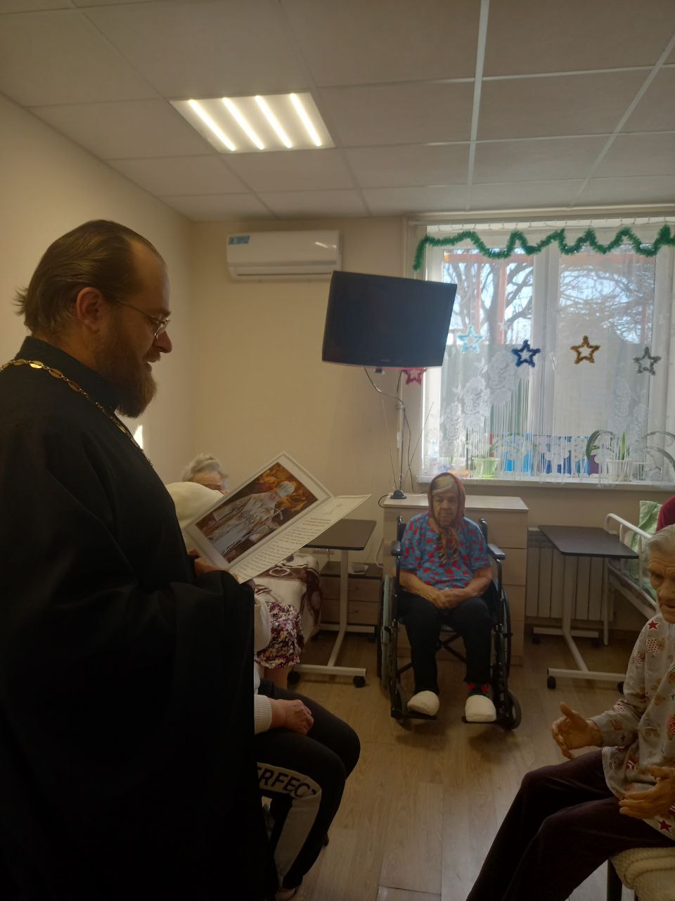 В один из самых главных праздников христиан священник нашего храма, иерей Сергий Корнет посетил постояльцев из пансионата по уходу за пожилыми людьми «Добро». Постояльцы пансионата — наши любимые бабушки и дедушки всегда с нетерпением и радостью ждут своего духовного отца. Отец Сергий огласил собравшимся Рождественское послание Святейшего Патриарха Кирилла и тепло поздравил постояльцев и сотрудников учреждения с праздником Рождества Христова и гражданским новолетием. После чего каждый желающий смог побеседовать с отцом Сергием о чем-то своем, о душевном. Духовная поддержка всегда важна для любого человека, а болящему она гораздо нужнее, поэтому постояльцы всегда очень рады любому вниманию и с особенной радостью и трепетом встречают и провожают священника Сергия, при этом благодаря Господа за оказанную духовную поддержку. А в столь светлый праздник, как Рождество Христово — это особенно трогательно и важно.