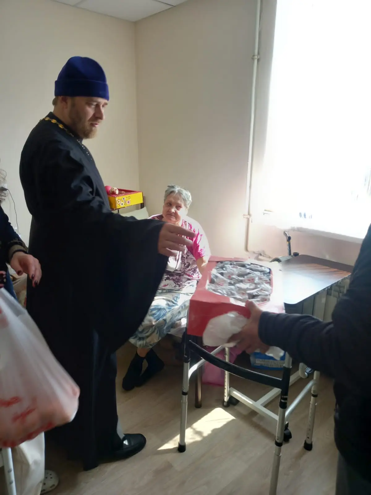 В Светлую Пасхальную седмицу штатный священник нашего храма, иерей Сергий Корнет посетил постояльцев из пансионата по уходу за пожилыми людьми «Добро». Храм уже несколько лет опекает бабушек и дедушек пансионата, поздравляет их с праздниками, дарит подарки, оказывает помощь в духовном плане. Постояльцы пансионата — наши любимые бабушки и дедушки всегда с нетерпением и радостью ждут своего духовного отца. Отец Сергий тепло поздравил подопечных с великим праздником Воскресения и по традиции обмениваться в эти дни пасхальной снедью, каждому из постояльцев были вручены освященные куличи. Потом все вместе пропели главный пасхальный тропарь и еще раз поздравили друг друга со светлым праздником Пасхи.